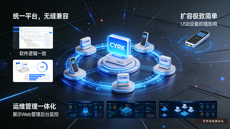 • N台高性价比CYRK分机(如CYRK-04/CYRK-2P)部署于各分会议室/办公室,作为灵活的“神经末梢”。