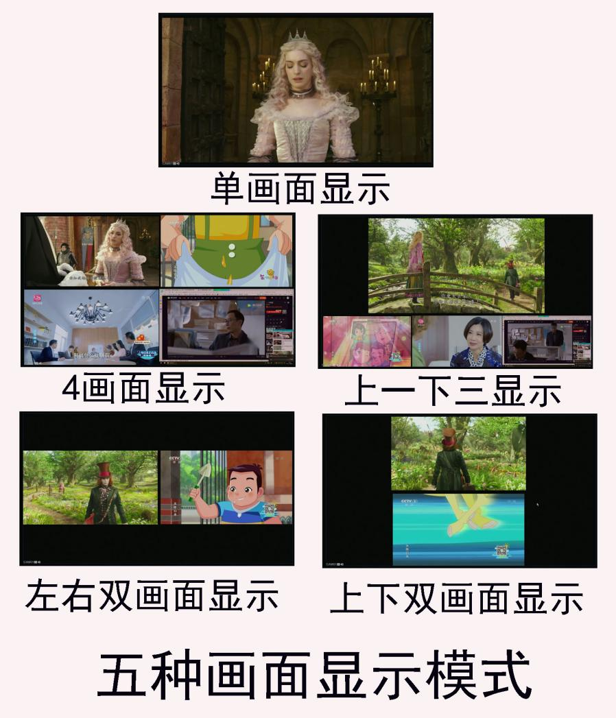可选5种画中画模式显示输入的信号,录制后为画中画一个文件。