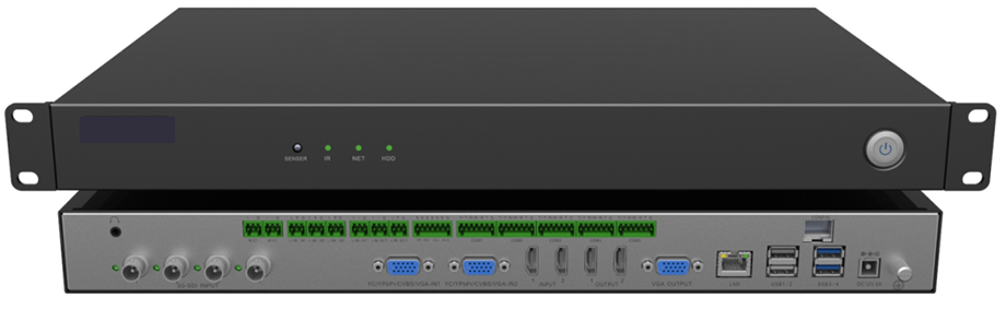 CYST-01,支持4路SDI、2路HDMI、2路VGA输入接口,可同时选择4路SDI、选HDMI或VGA的2路信号输入录制;支持SIP/H323协议,内置MCU,可拉流视频会议终端信号呼叫录制。支持混音录制。支持内置一块8TB 3.5寸SATA硬盘。支持本机、浏览器、客户端以及中控操控。
