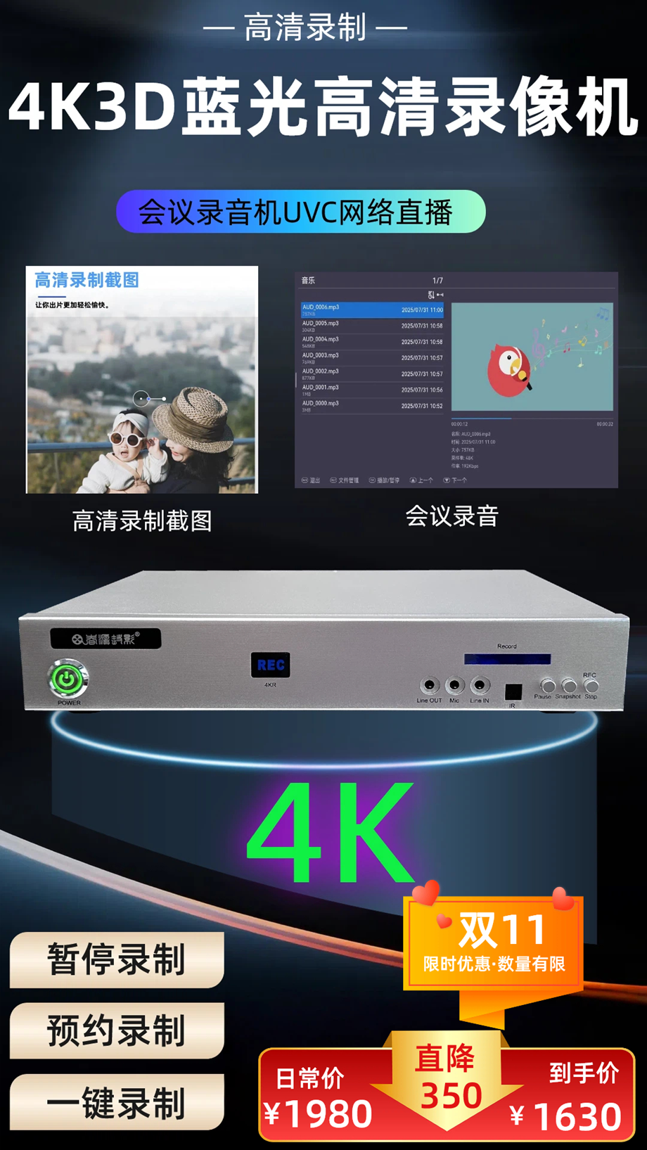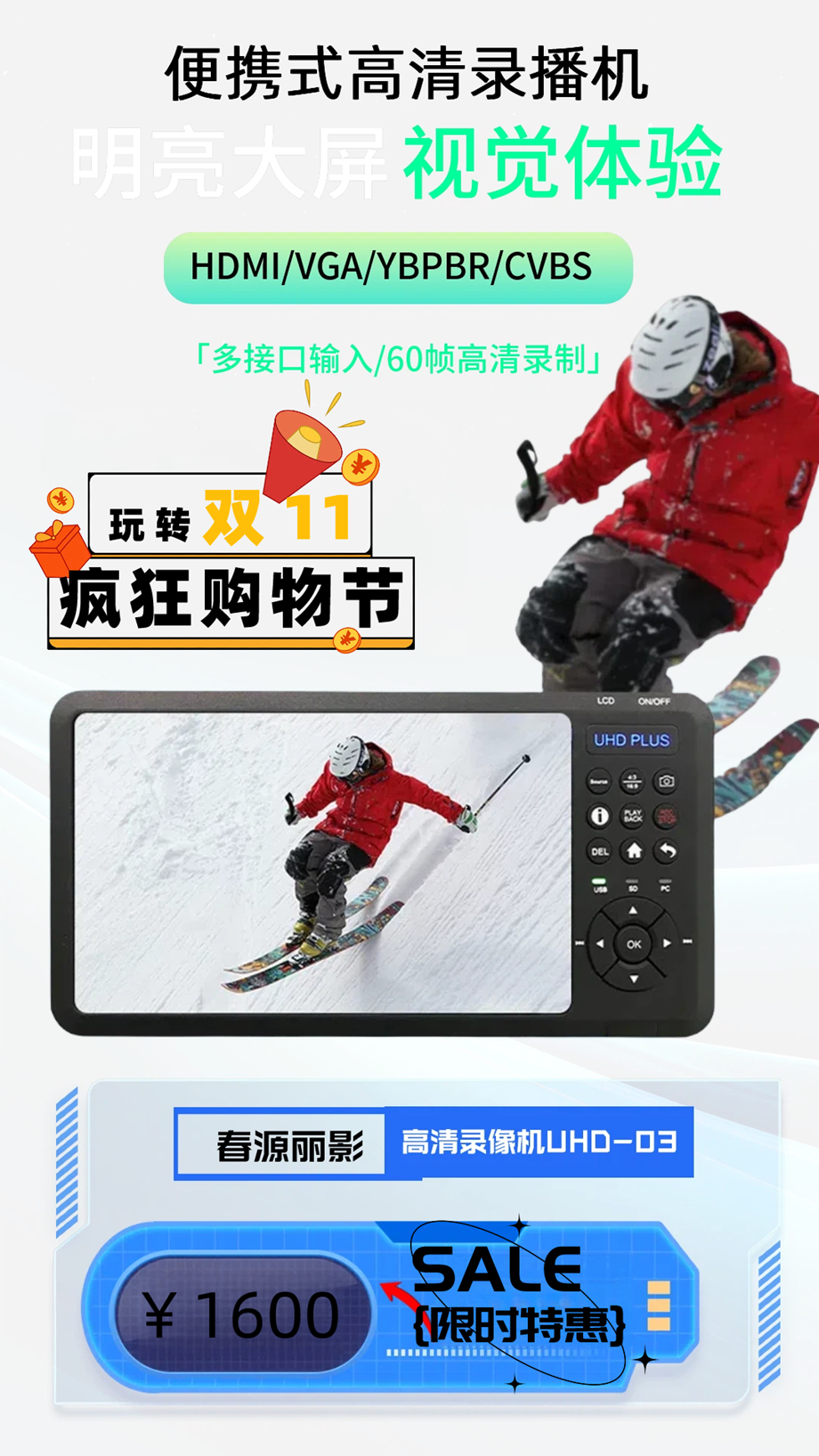 双十一疯狂购物节再次来临!为回馈新老嘉宾,深圳春源丽影电子科技有限公司,将广大个人高清粉丝以及医疗机构最为常用的8款高清录像机产品,推出了超低价特惠方案!产品涵盖了单接口机、多接口机、带屏机、微型机等型号。推出型号多、针对性强、价格超低、时间跨度长,真正体现了春源丽影让利与客的惠民原则!