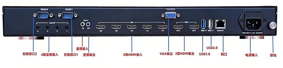 • 视频输出:提供2路HDMI 4K输出与1路VGA输出。可灵活设置为预览界面、导播界面或直播推流界面,满足现场监看与操作的不同需求。
