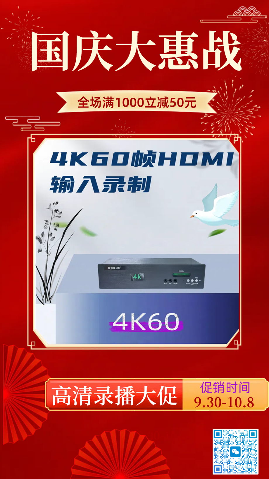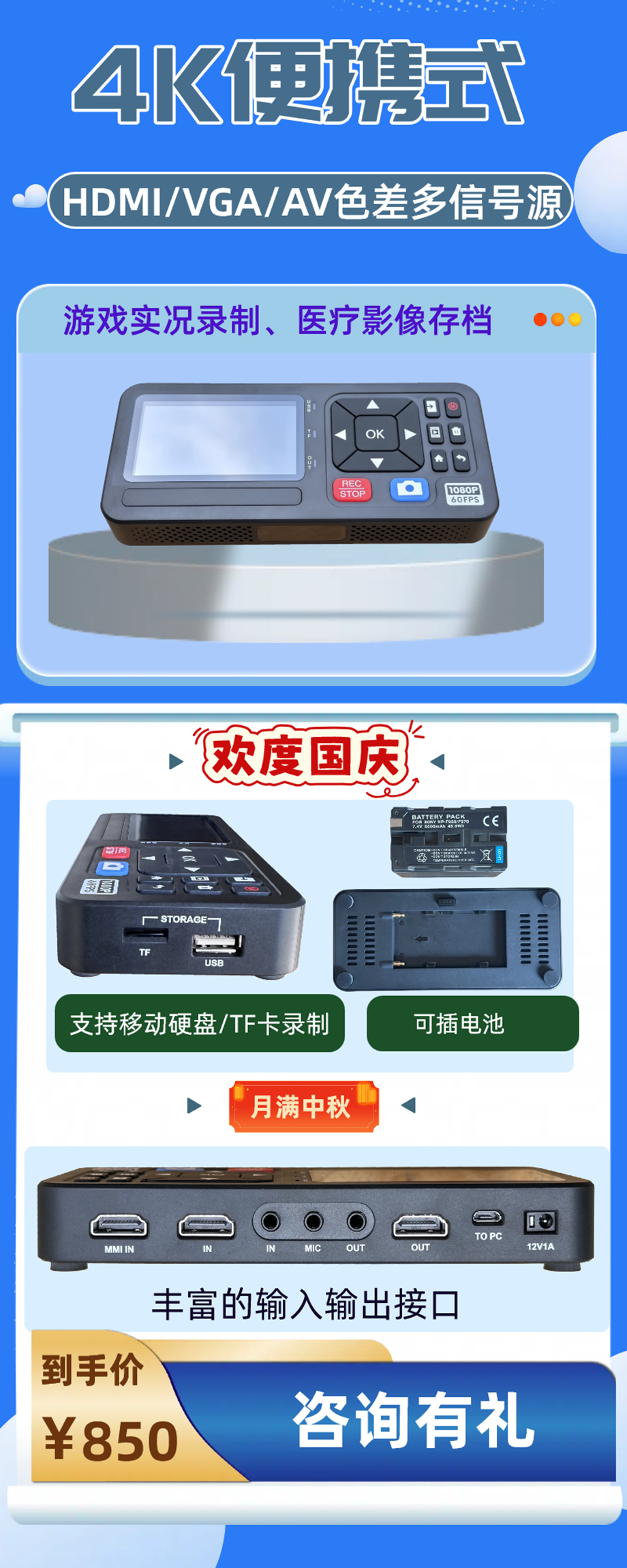 • HDMI+USB 双输入,支持 4K30/1080P60 录制