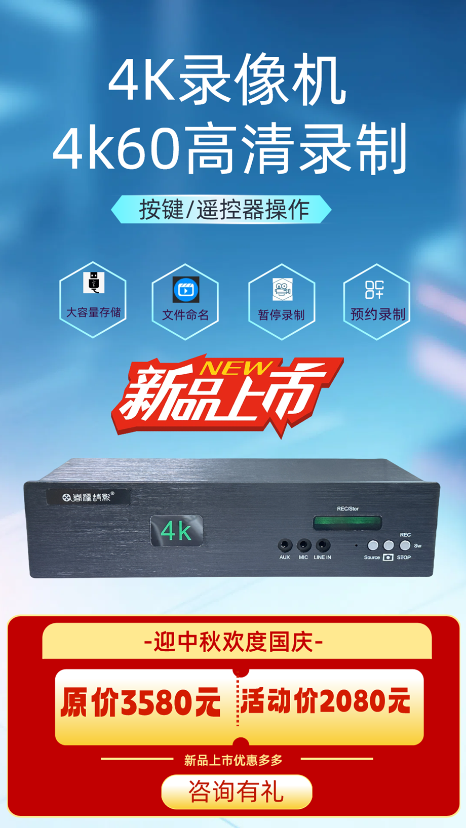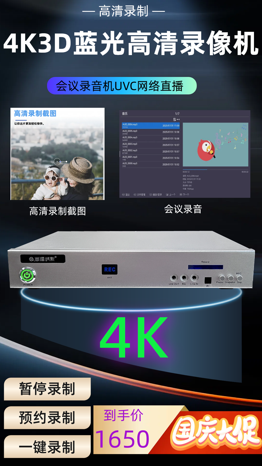 • 真 4K 输入,H.265/H.264 编码,画质细腻