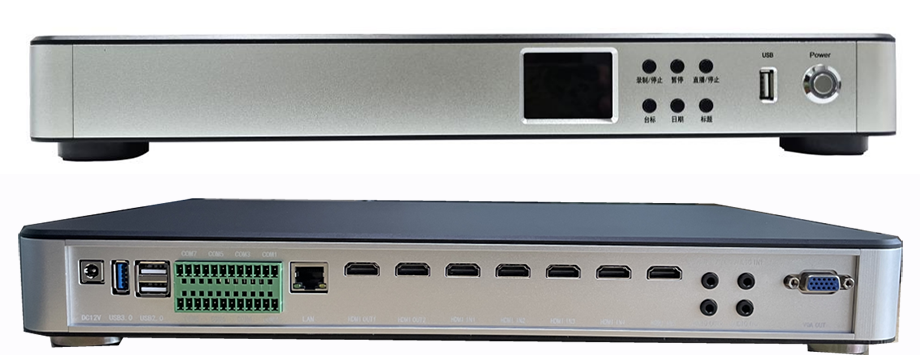 支持5路HDMI输入4K30录制,可选2路4K30、5路1080P录制,支持定时录制。支持添加网络信号录制。支持内置一块8TB 3.5寸SATA硬盘。支持本机、浏览器、中控操控。