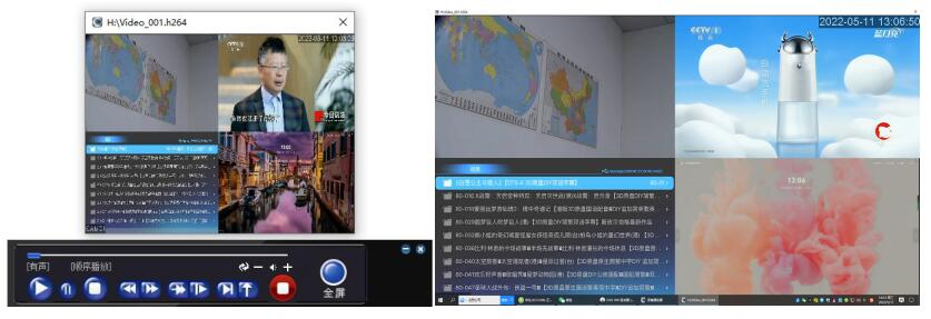 当数字物理信号输入与网络IPC混合输入时,可以显示为16/8/4/1画面模式。每个画面均可以一键全屏。
