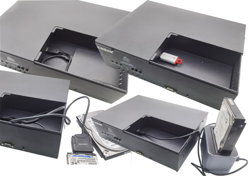 HDT103通过硬盘仓的USB接口,可以插入移动硬盘、U盘、SATA转硬盘芯、3.5寸硬盘座进行录像,最大支持到6TB。NTFS格式,每录制16GB、3-4小时左右自动分段;FAT32格式,每录制4GB停止录像。